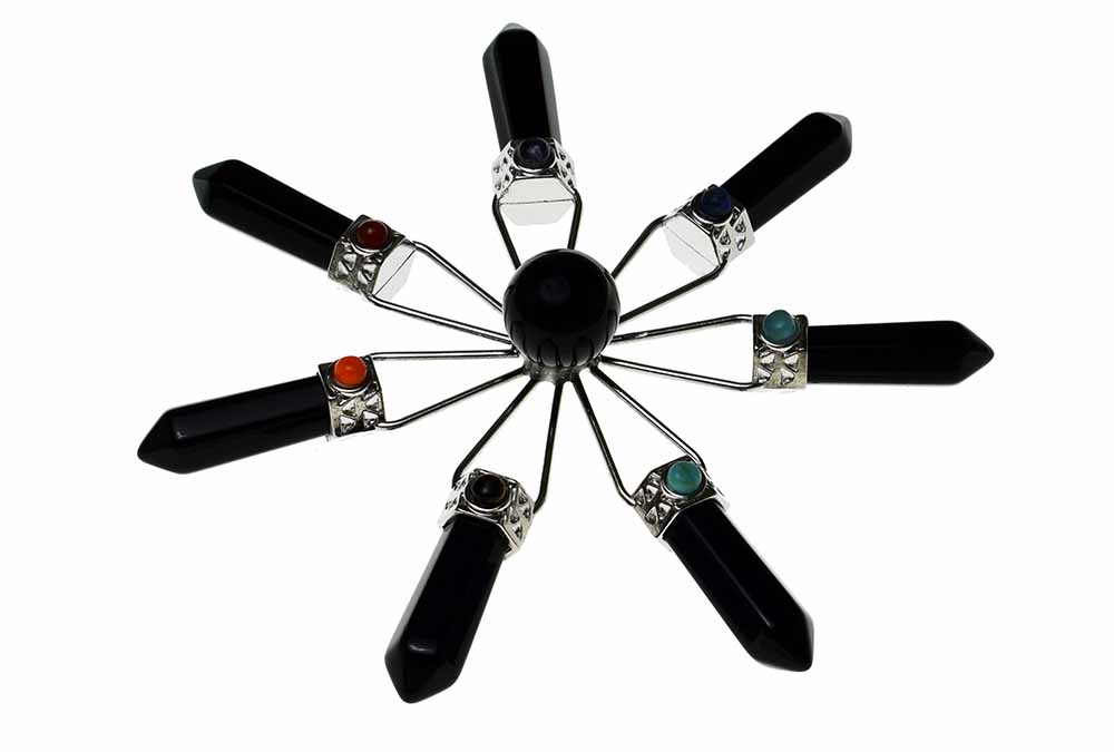 Energy Generator Black Obsidian With Ball And 7 Chakra Wands 12cm Diameter