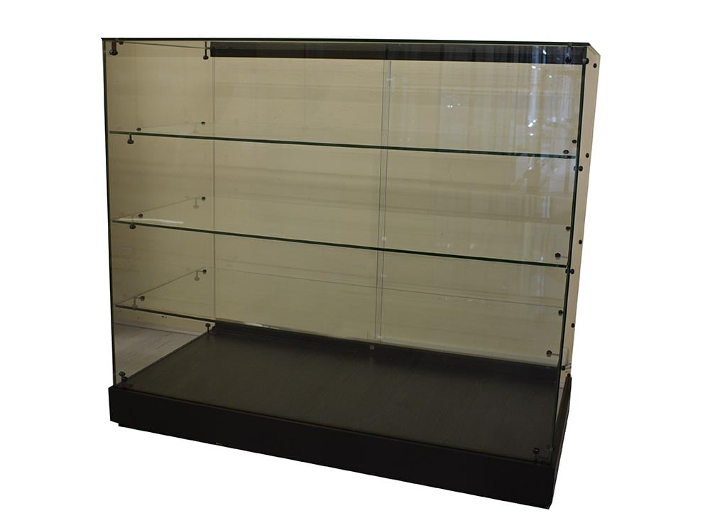 Cabinet 1200X600X1050mm Counter With Tempered Glass And Melamine MDF In Black Colour. 3 Glass Shelves And Lockable Sliding Glass Doors. Adjustable Feet With Wheels. This Item Comes Flat Packed – Self Assembly Required.