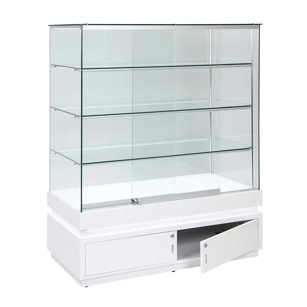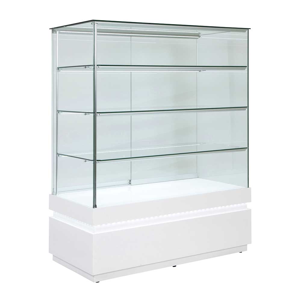 Built from wood and covered with a glossy laminate finish and tempered glass measuring 8mm in thickness, these high quality frameless units really stand out from the rest providing you with a professional, secure and long lasting display cabinet.
