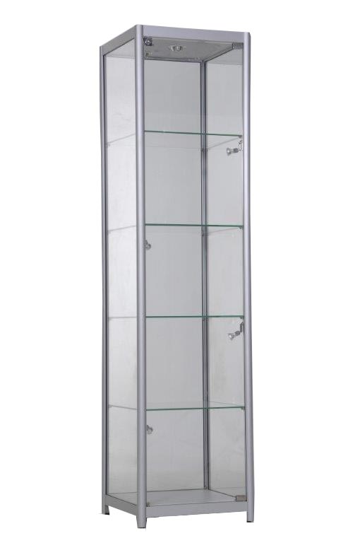 Built using a robust aluminium frame in Satin Silver with tempered glass measuring 8mm in thickness and fully lockable doors, this provides you with a professional, secure and long lasting display cabinet.
