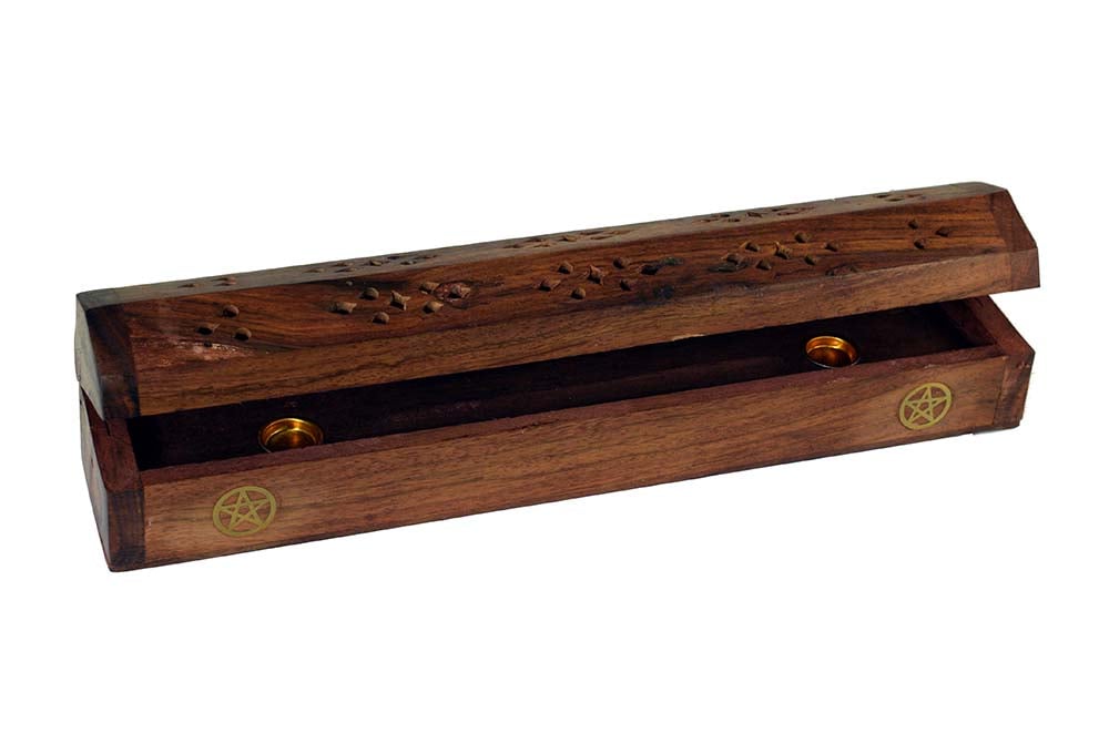 Incense Box Wooden With Pentagram Brass Symbols 30X5.5X6cm