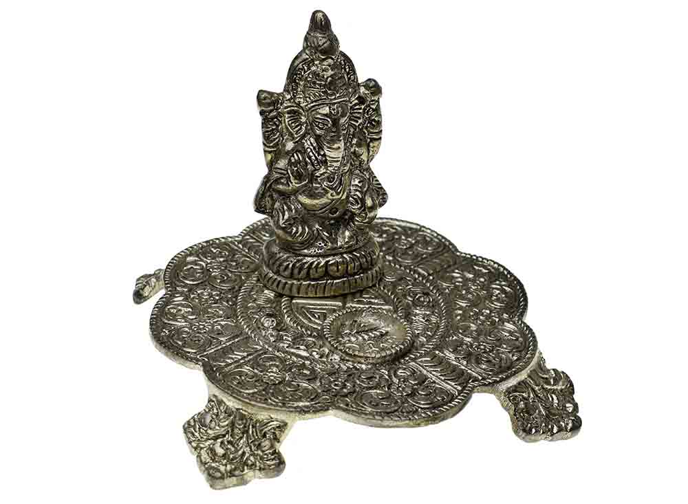 Incense And Cone Holder Aluminium Patterned Plate With Ganesh