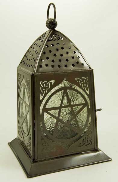 Lantern Candle Holder Pentagram Antique Bronze Effect H23cm