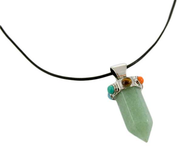 Necklace Fix Wand Aventurine With Chakra Stones On Leather Cord