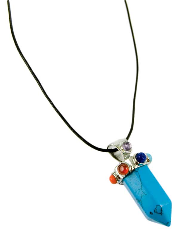 Necklace Fix Wand Turquoise With Chakra Stones On Leather Cord