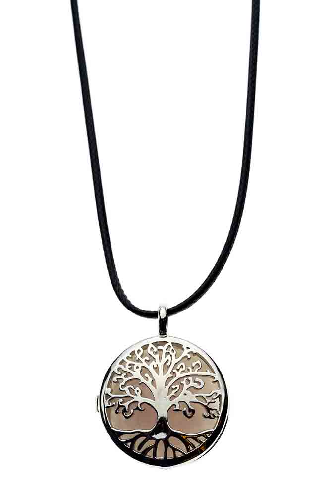 Necklace Tree Of Life Rose Quartz Stone In Cage 30mm On Cord