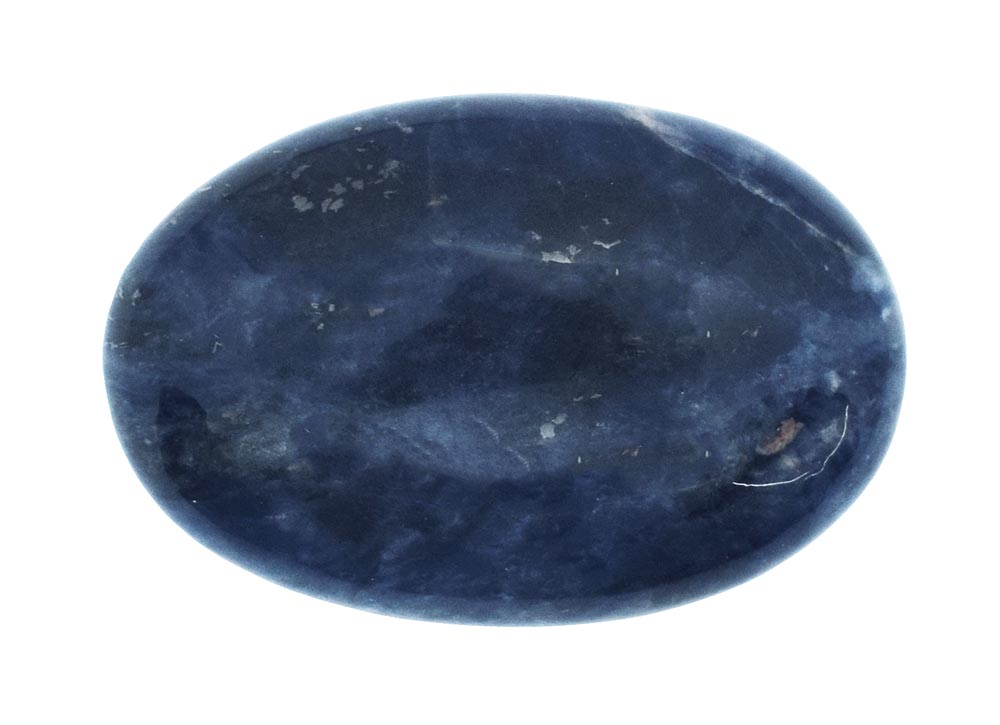 Sodalite, said to be a stone of insight and mental enhancement, having vibrations to unlock deepened intuition, a go-to stone for those who are oversensitive or struggle with anxiety or panic attacks, said to stabilise the mind and allow a shift from emotional to rational.