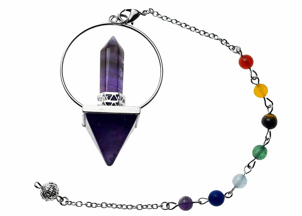 Pedulum Energy Amethyst with Pyramid and Wand on Chakra Chain