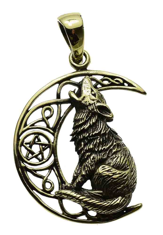 Pendant Bronze Moon Gazing Wolf By Lisa Parker H3.2cm