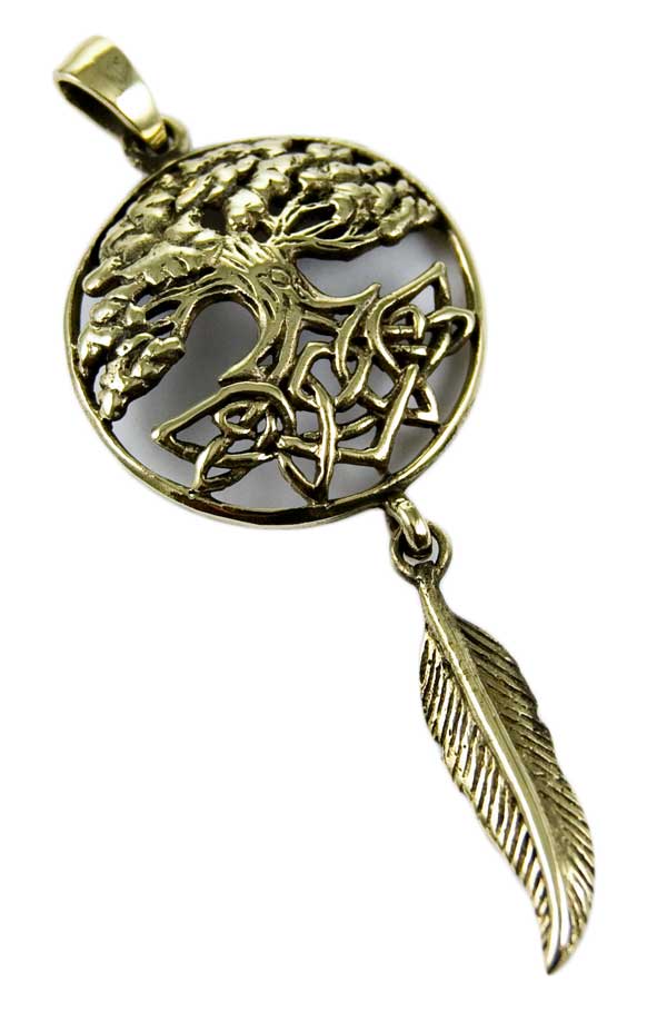 Pendant BronzeTree of Life Dreamcatcher with Feather By Lisa Parker