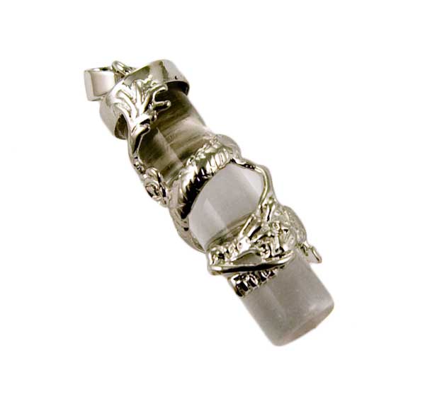 Pendant Cylinder Dragon With Clear Quartz Stone 35x10mm