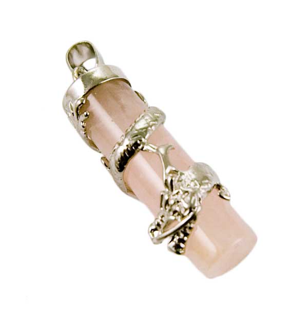Pendant Cylinder Rose Quartz Dragon 35x10mm