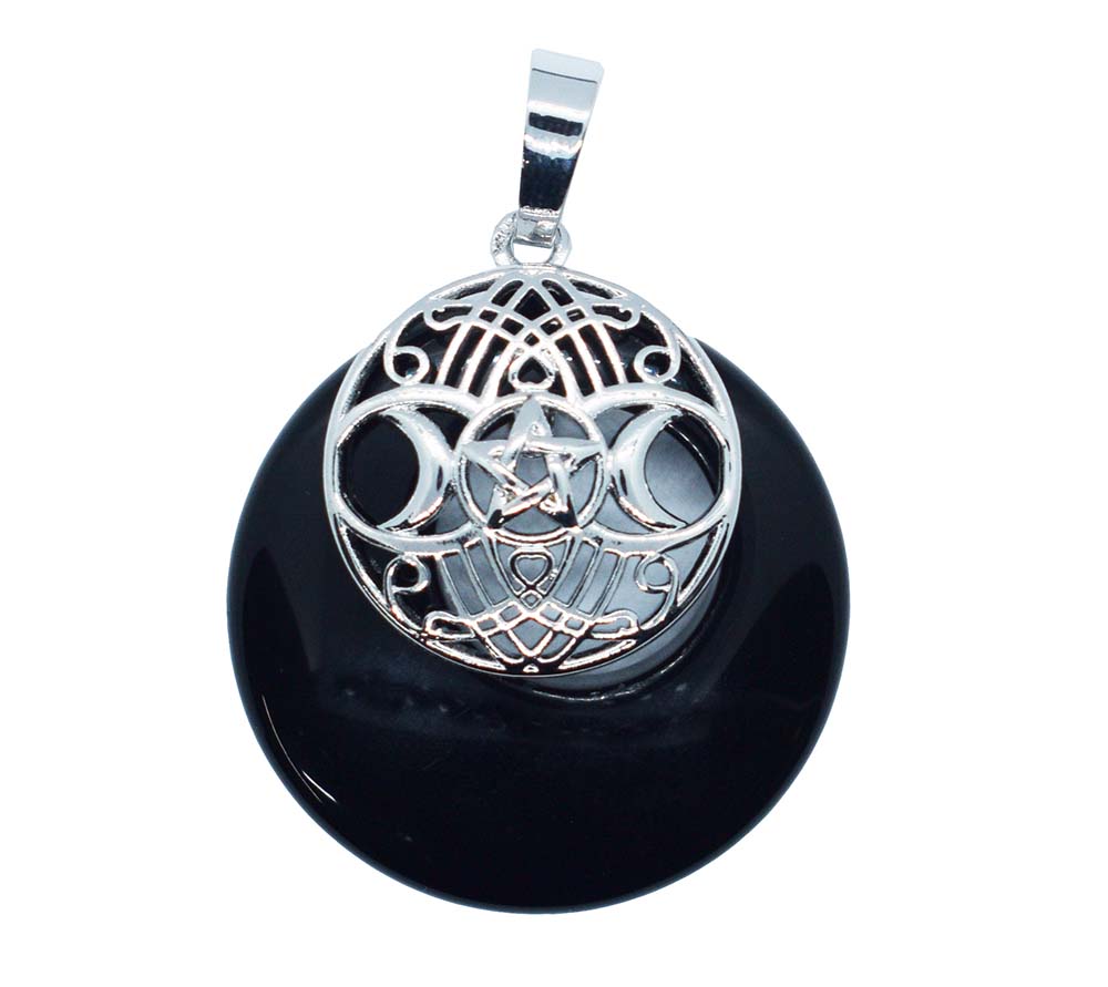Pendant Donut Triple Moon Obsidian
