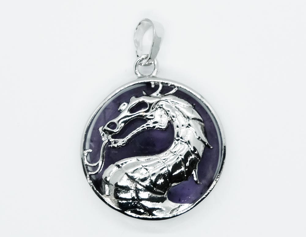 Pendant Dragon On Amethyst Round