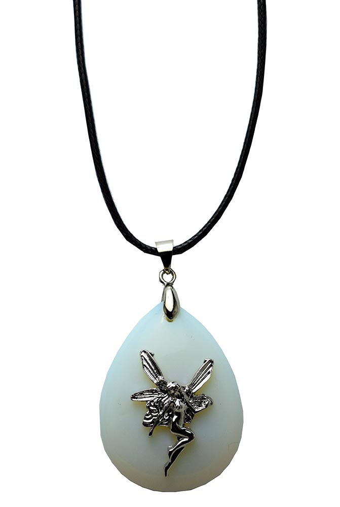 Pendant Fairy Drop With Opalite Stone On A Wax Cord Necklace