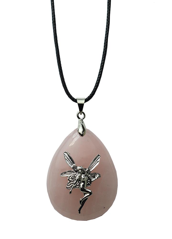Pendant Fairy Drop With Rose Quartz Stone On A Wax Cord Necklace