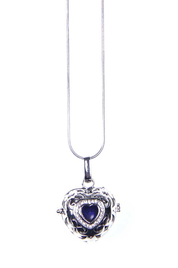 Pendant Heart Lapis With Rhinestones In Cage On Snake Chain