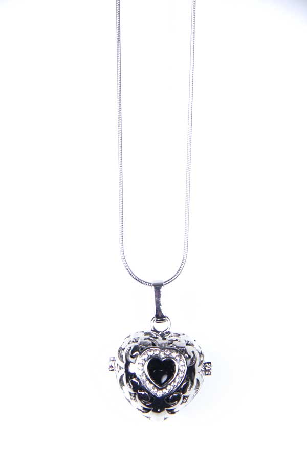 Pendant Heart Onyx With Rhinestones In Cage On Snake Chain