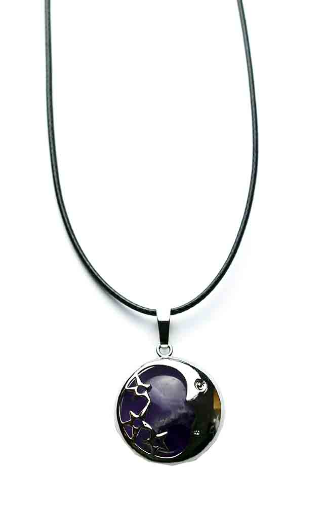 Pendant Moon With 3 Stars Amethyst On Wax Cord 2.2cm