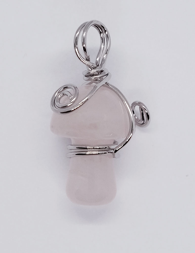 Pendant Mushroom Rose Quartz Wired