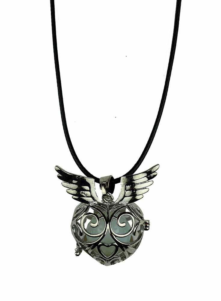 Pendant Opalite Stone In Heart Cage With Wings On Cord