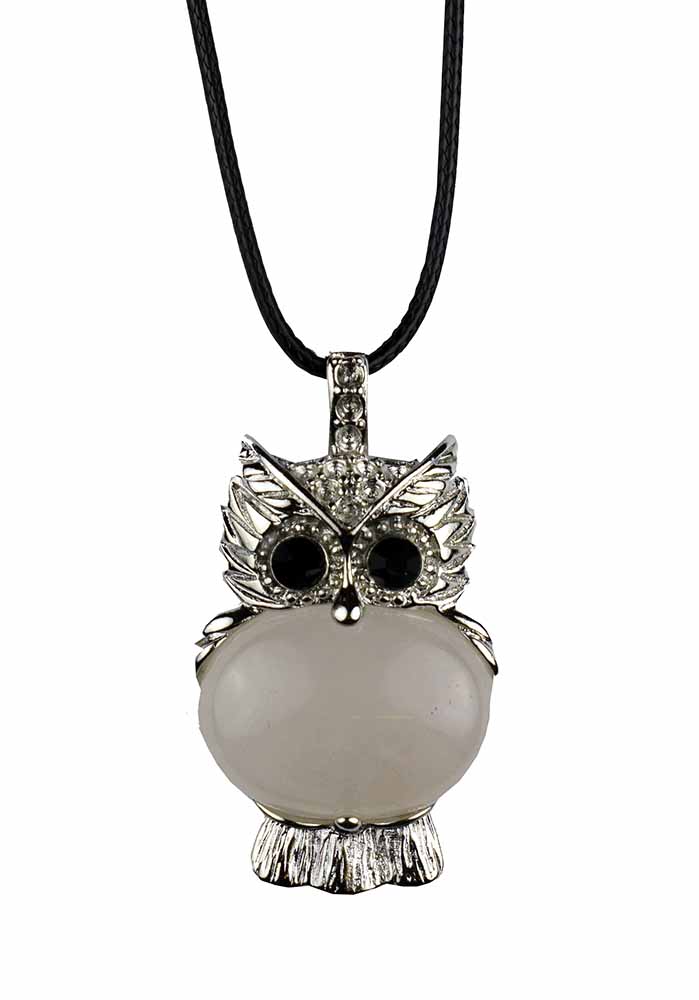 Pendant Owl Rose Quartz On Cord