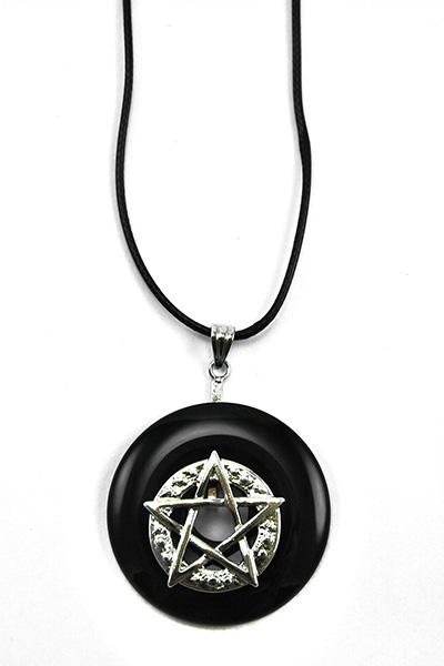 Pendant Pentagram In Donut Onyx On Wax Cord