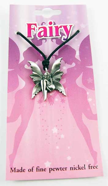 Pewter Pendant Fairy Sitting With Large Leaf Style Wings