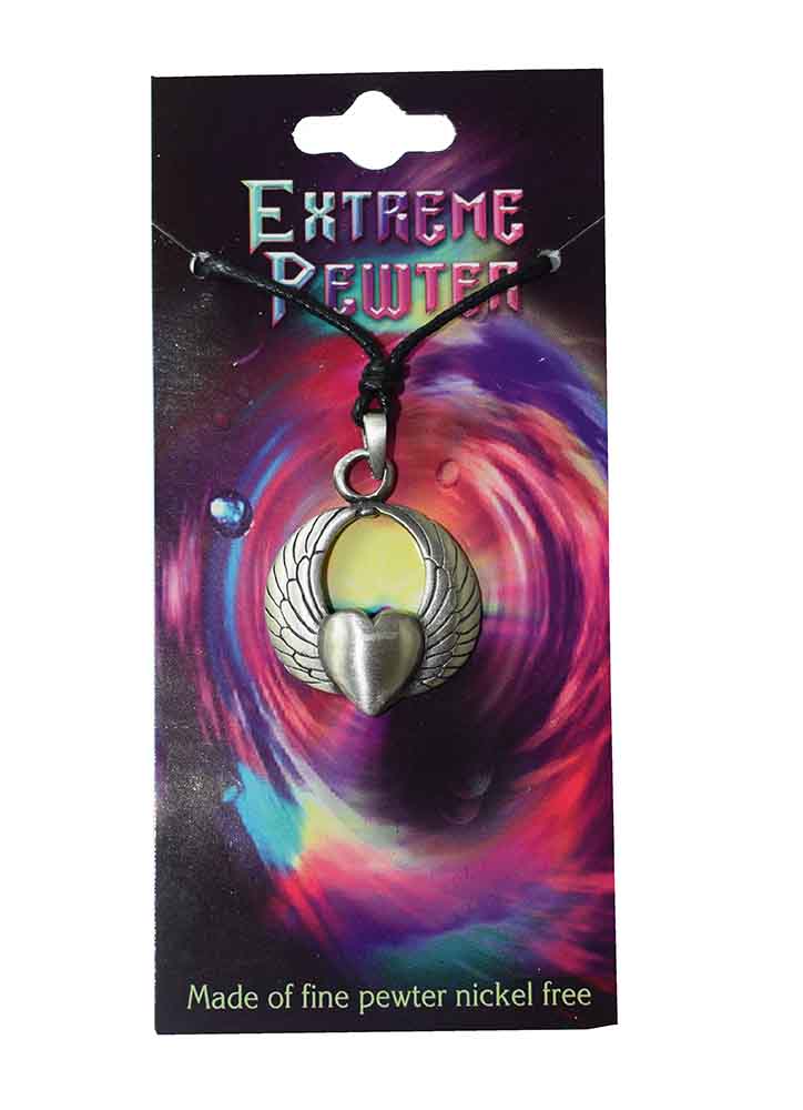 Pendant Pewter Winged Circle With Heart