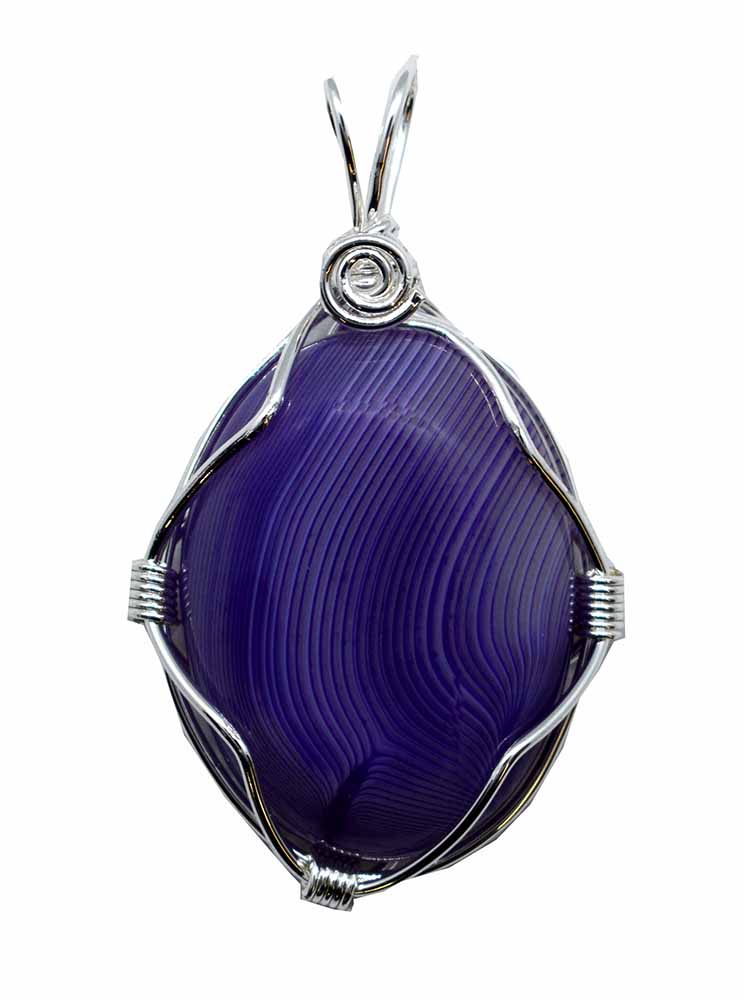 Pendant Purple Stripe Agate Oval Stone In Cage 22X30mm