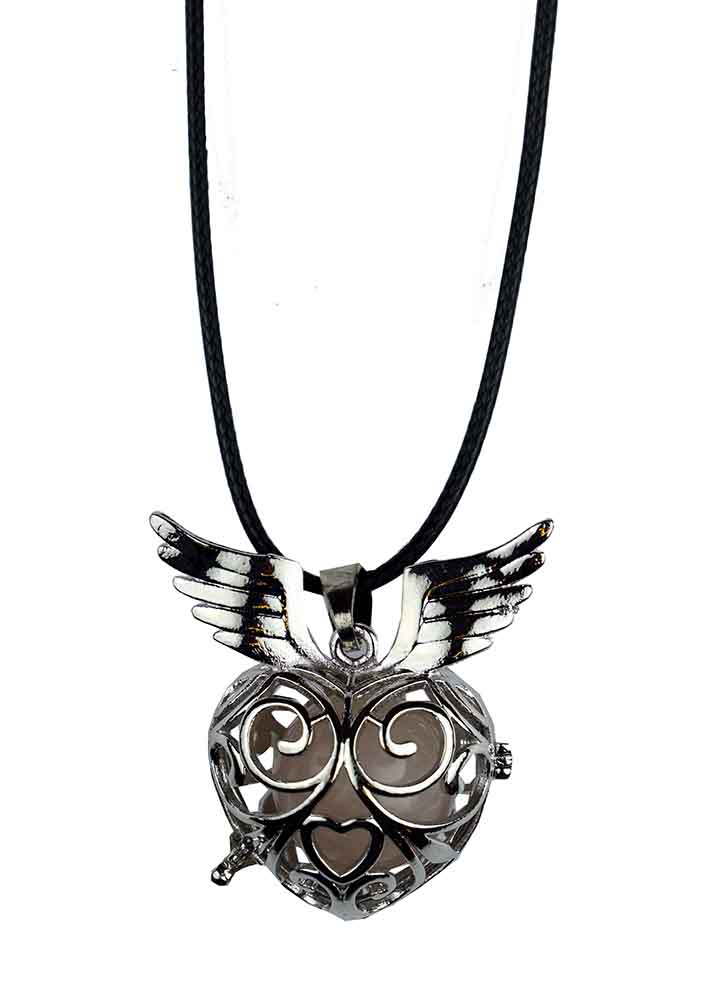 Pendant Rose Quartz Stone In Heart Cage With Wings On Cord