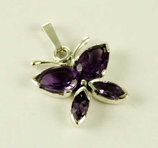 Pendant Silver Butterfly Amethyst Cut Stones L1.5XW1.8cm