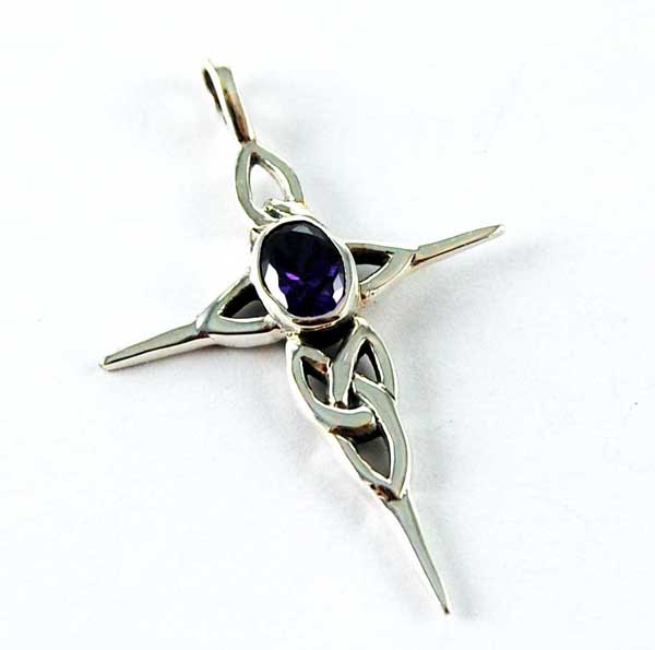 Silver Pendant Celtic Cross With Amethyst Stones 40 mm