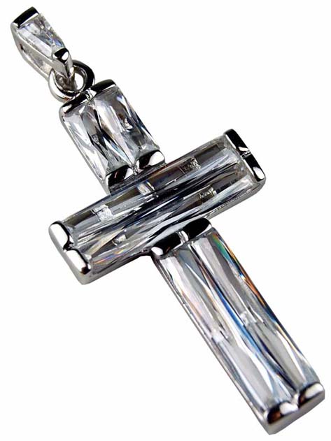 Silver Pendant Cross With Clear Stone 41 mm