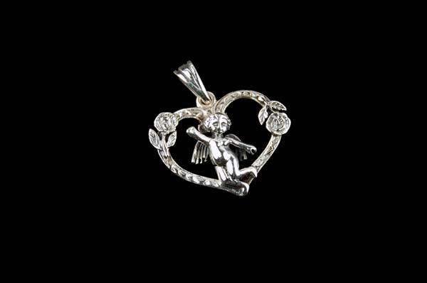 Silver Pendant Cupid in Heart 20 X 25mm