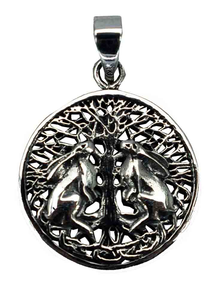 Silver Pendant Hares Gazing Up H3XW2.4cm