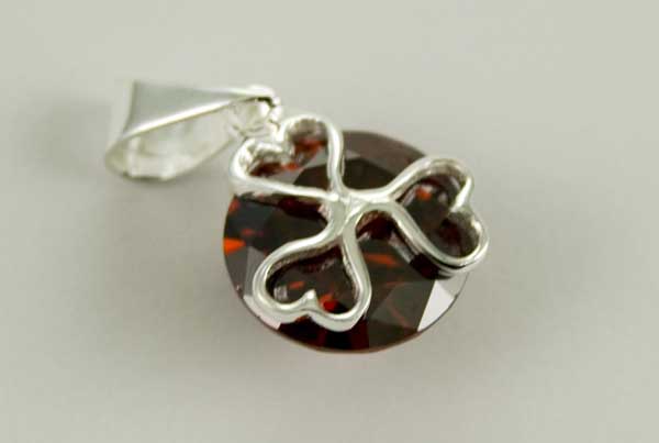 Pendant Silver Hearts Red Cubic Stone 13mm
