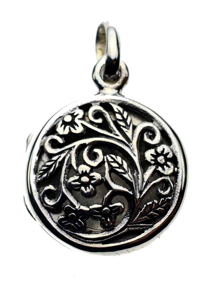 Pendant Silver Locket Circle With Floral Design L2.5cm