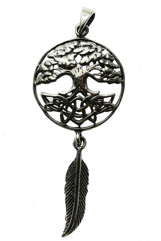 Silver Pendant Tree of Life Dreamcatcher with Feather By Lisa Parker L7CM