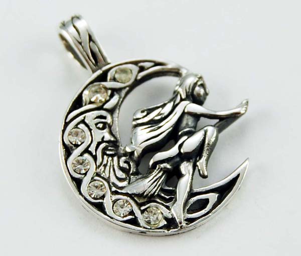 PENDANT SILVER WITCH ON MOON CLEAR 26MM