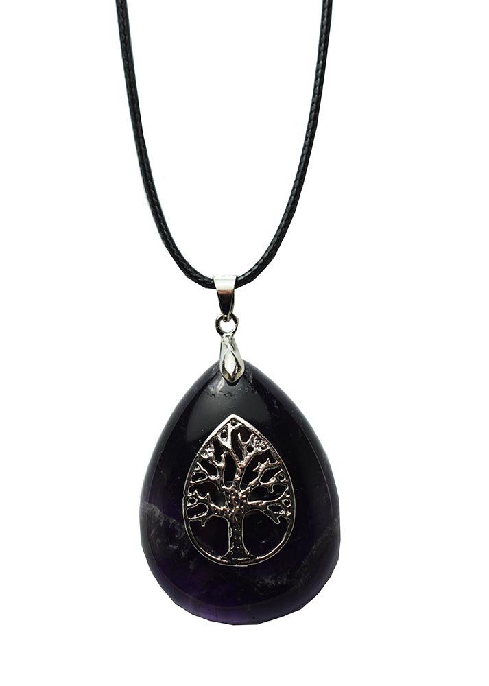Pendant Tree Of Life Drop With Amethyst Stone On A Wax Cord