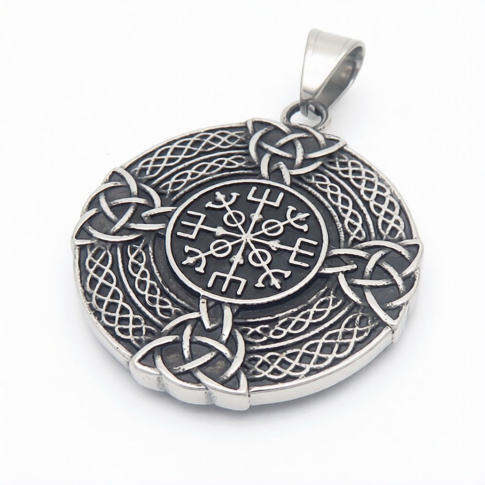 Pendant Stainless Steel Nordic Vegvisir Viking Protection Rune With Triquetra