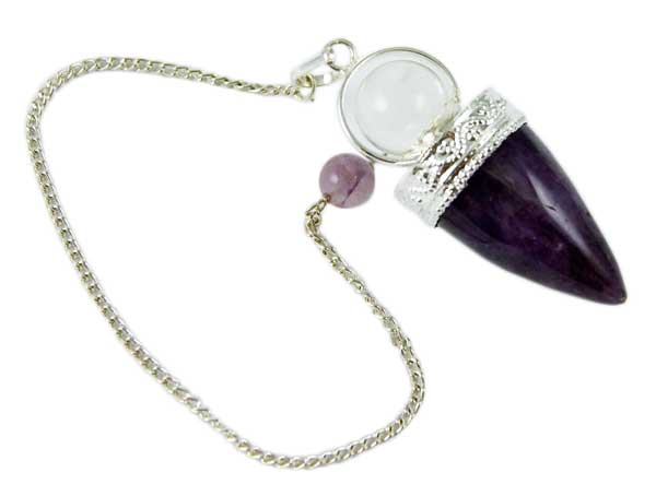 Pendulum And Amethyst Stone Pear Shape With Ball Silver Plated L4.5cm