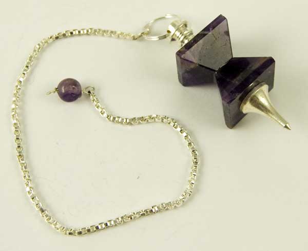 Pendulum Dowsing Tool Amethyst Stone Double Pyramid Point Silver Plated L4cm