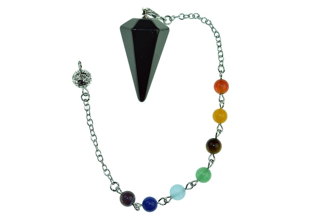 Pendulum Black Obsidian Faceted Stone Cone With Chakra Chain