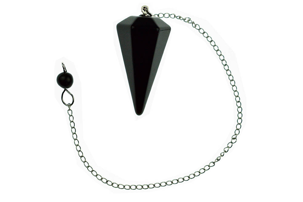 Pendulum Black Obsidian Faceted Stone Cone With Chain