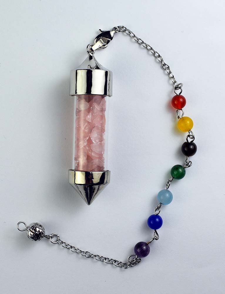 Pendulum Chip Bottle in Rose Quartz on Chakra Chain