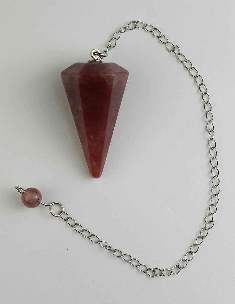 Pendulum Cone Shape Faceted Strawberry Quartz with Simple Chain