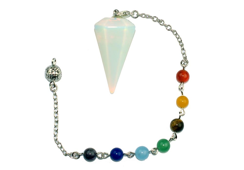 Pendulum Opalite Faceted Stone Cone With Chakra Chain