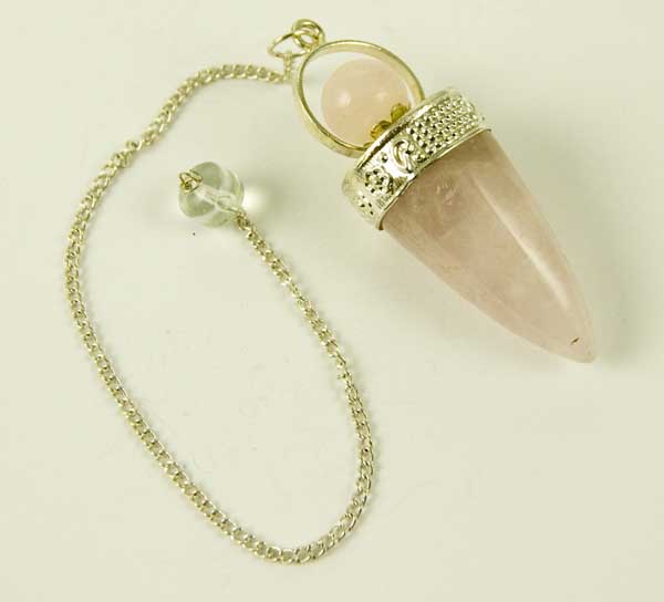Pendulum And Rose Quartz Stone Pear Shape With Ball Silver Plated L4.5cm